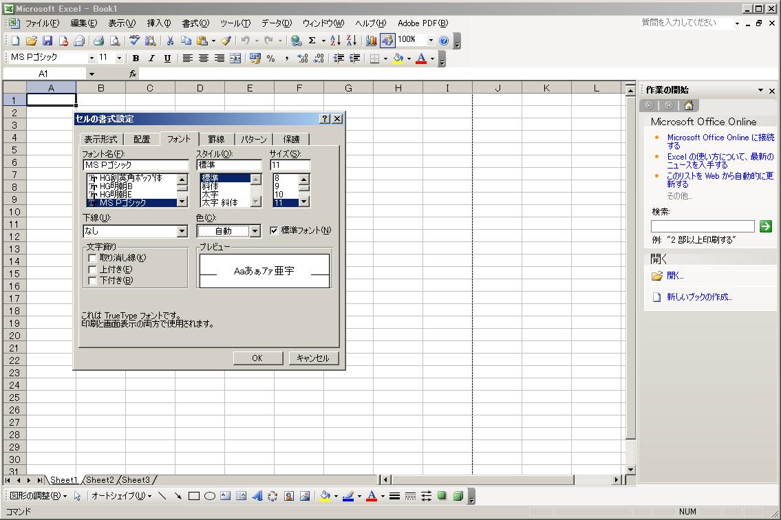 セルの書式設定:フォント