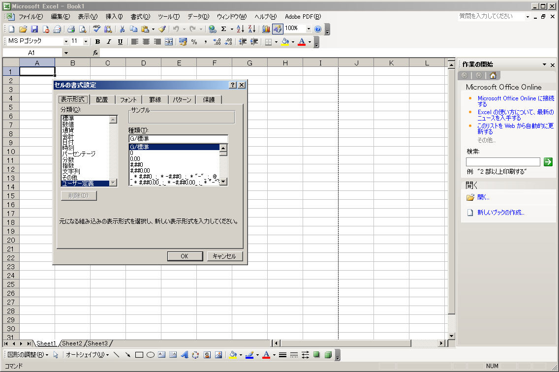セルの書式設定:表示形式