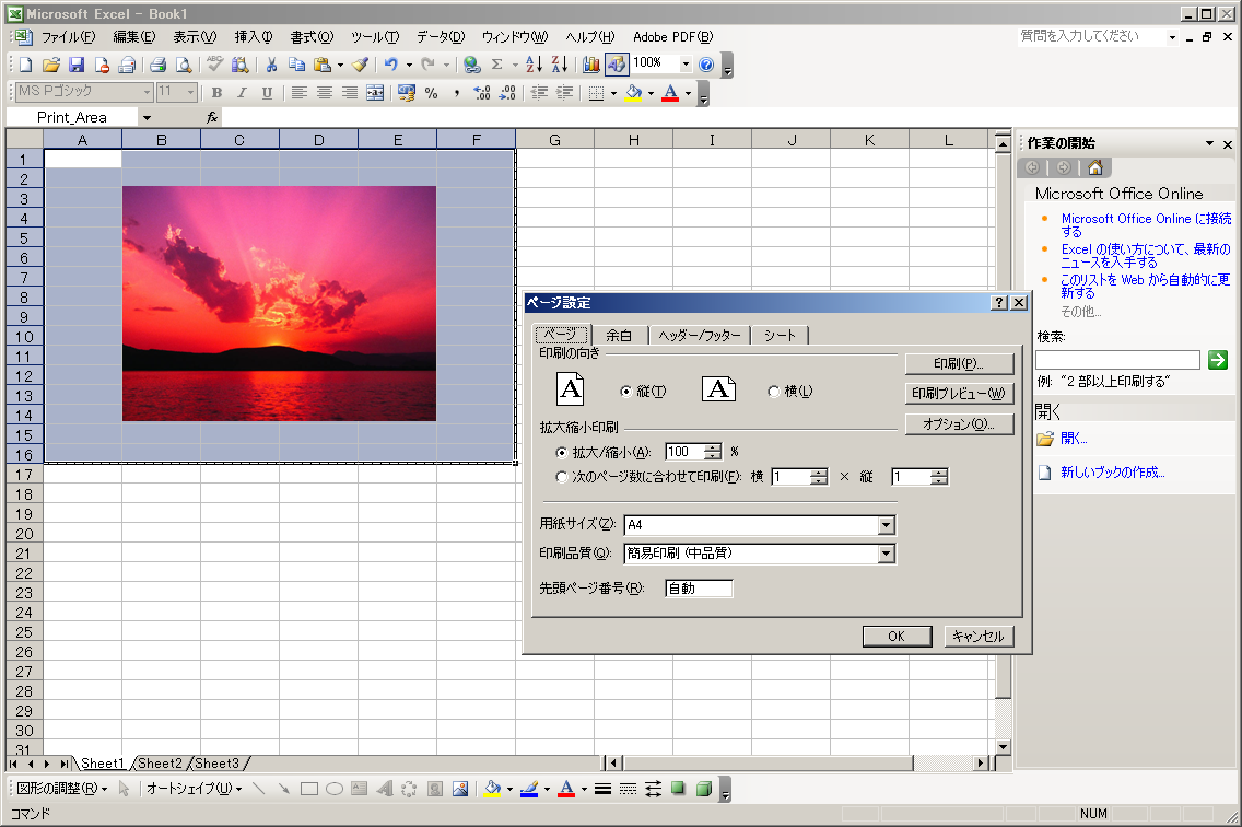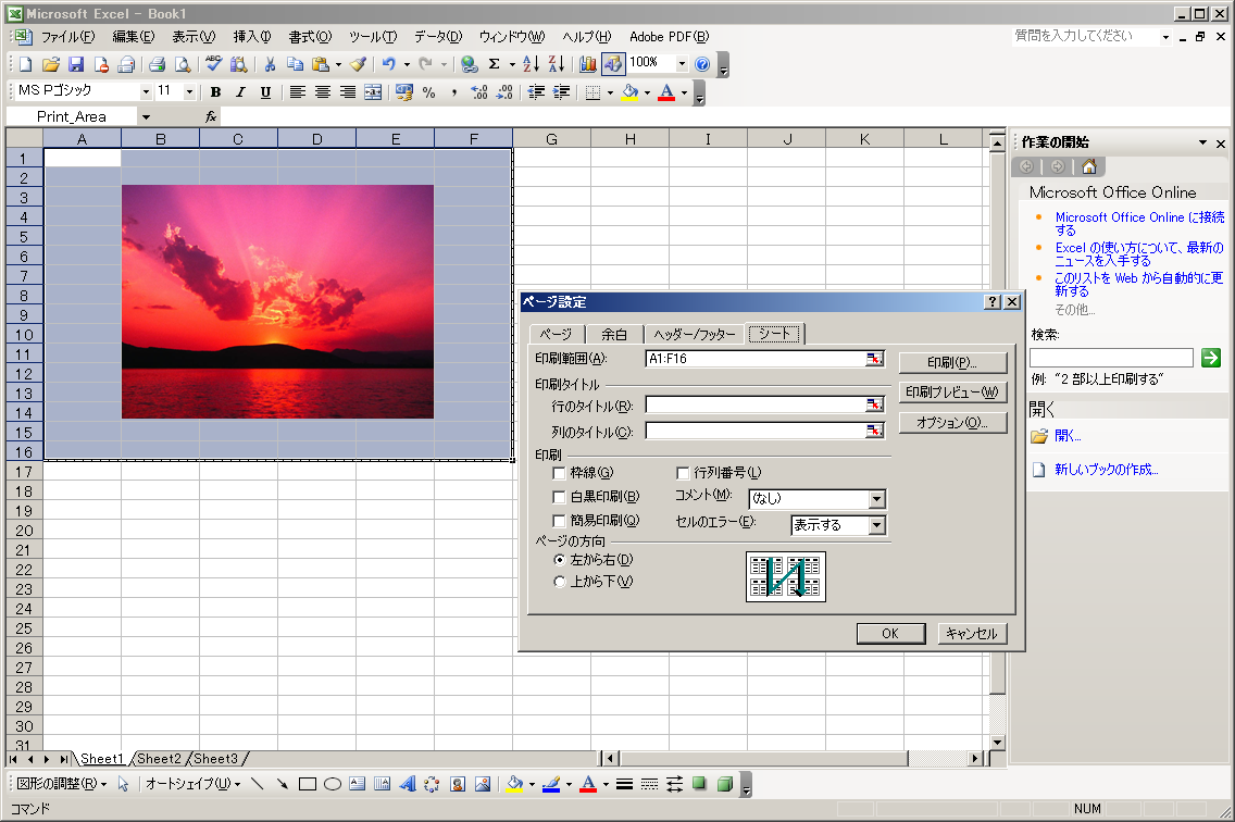 ページ設定:シート
