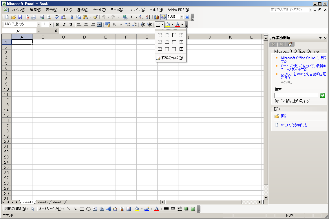 書式設定ツールバー:罫線