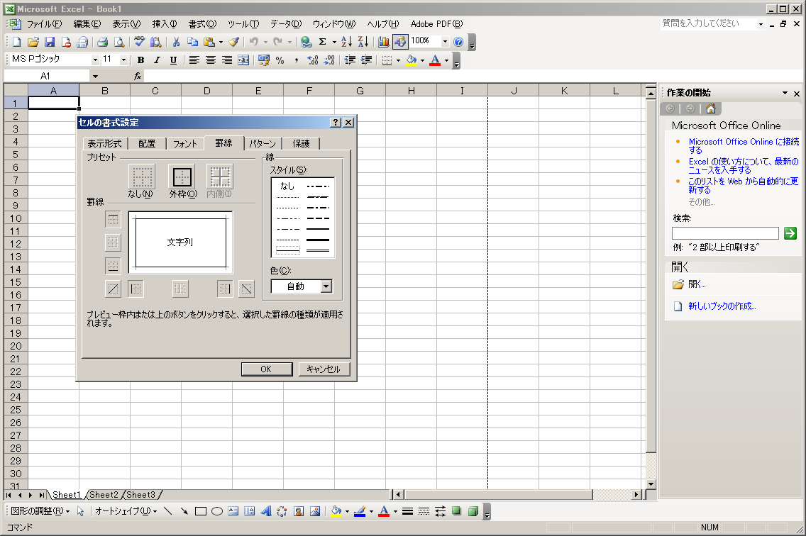 セルの書式設定:罫線
