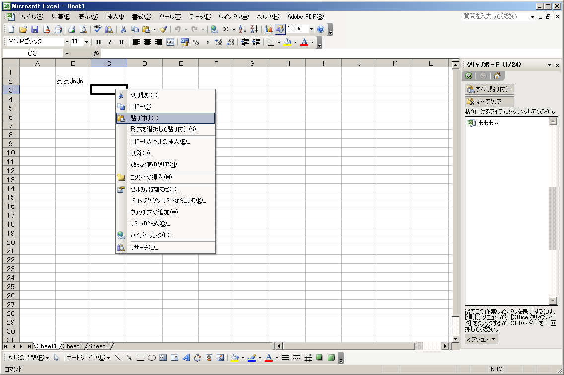 右クリックメニュー(コンテキストメニュー)
