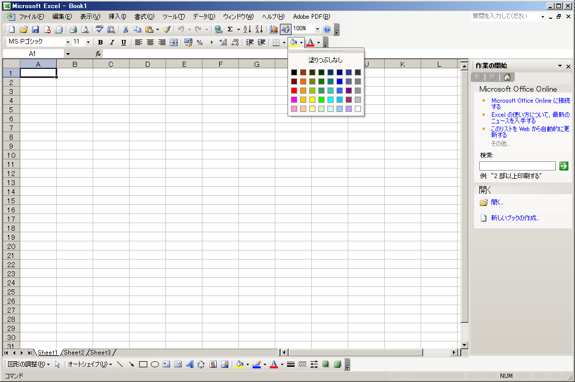 書式設定ツールバー:塗りつぶし