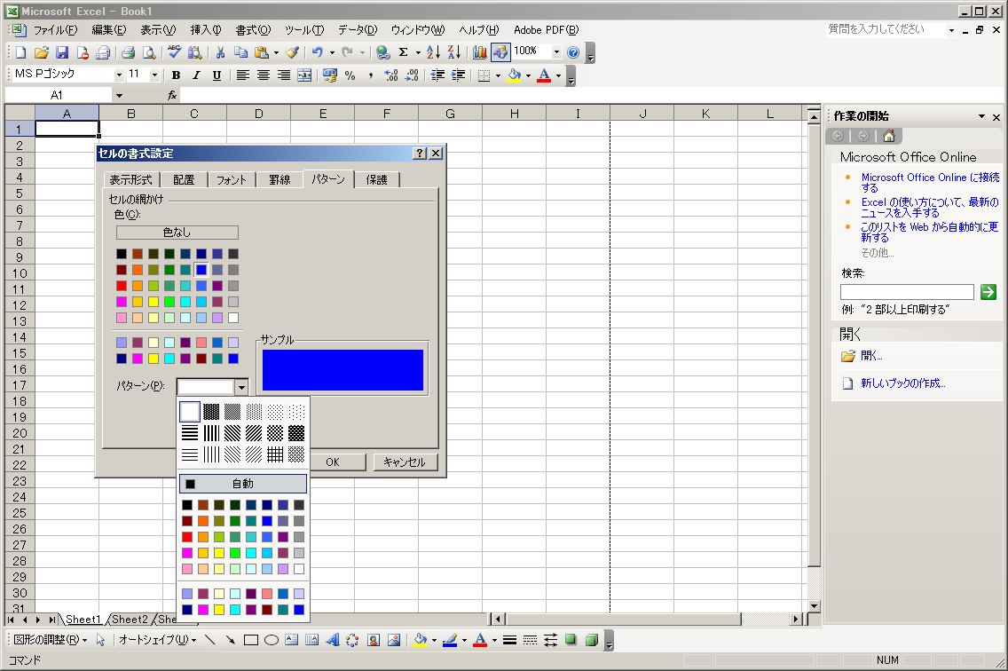 セルの書式設定:塗りつぶし